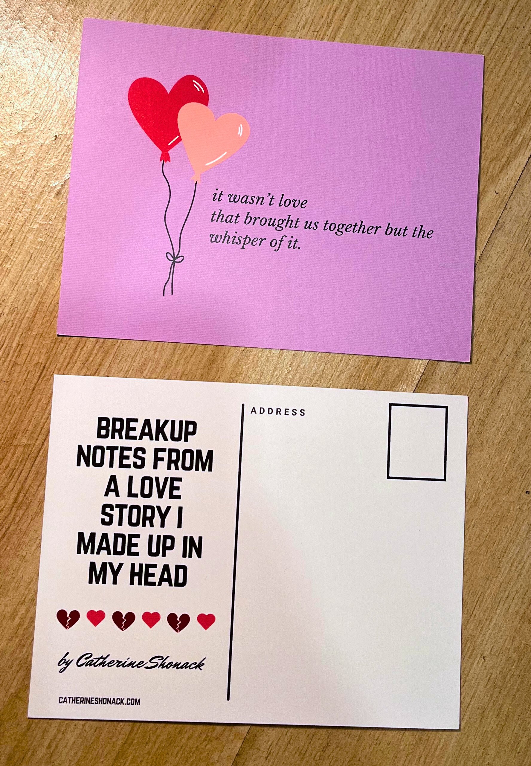 a postcard featuring a quote from "in the name of saving face", which is a poem in "breakup notes from a love story i made up in my head".